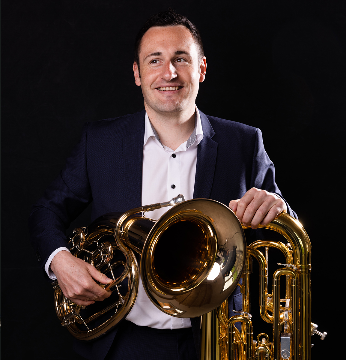 Michael Müller, born in 1986 in Winterrieden, began his musical education at the Vocational School of Music in Krumbach under Peter Seitz. He continued his studies in euphonium at the Bern University of the Arts and the Lucerne School of Music with Thomas Rüedi. After completing his master’s degree in music education, he earned a second master’s degree in performance with distinction in 2014. During his studies, he gained valuable experience playing with renowned brass bands such as BB Bürgermusik Luzern and BB Berner Oberland. Since 2012, he has been a permanent member of Ernst Hutter & Die Egerländer Musikanten – Das Original as well as the Kleine Egerländer Besetzung. Since 2015, he has played tenor horn with the brass ensemble Alpenblech. Together with his wife, he published Brass Trail, an innovative method book for brass players. He is also a sought-after clinician, regularly teaching at workshops in Germany, Austria, and Switzerland.